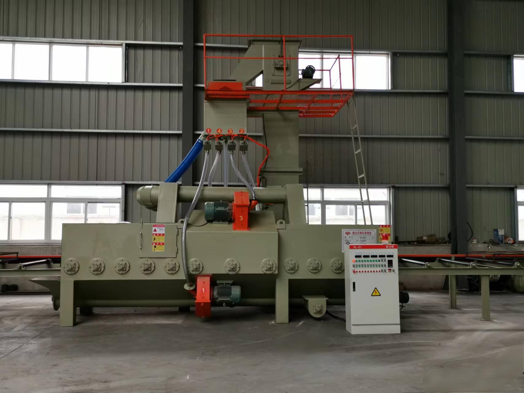 辊道式抛丸清理机是将工件吊挂在输送辊道上,辊道输送系统将工件向前输送,当工件进入清理室时,抛丸器开始顺序工作。经过抛丸处理后,钢材表面的氧化皮、污物及其它附着物被清理干净,处理过的表面可达Sa2-2.5级。抛丸机的工作方式是连续循环进行的。
