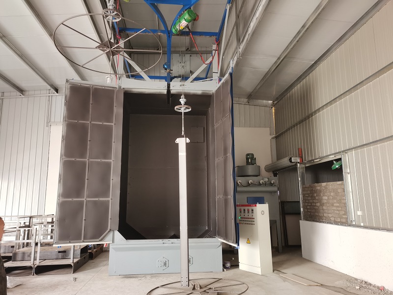 上海客户Q3740-4双吊钩抛丸清理机现场案例: